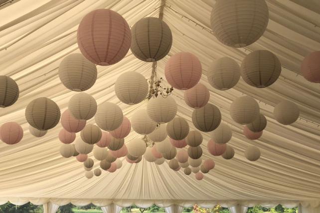 Our paper lantern installation team decorated the marquee room at the Cotswolds Hotel and Spa with a mixture of white, blush and latte coloured lanterns.